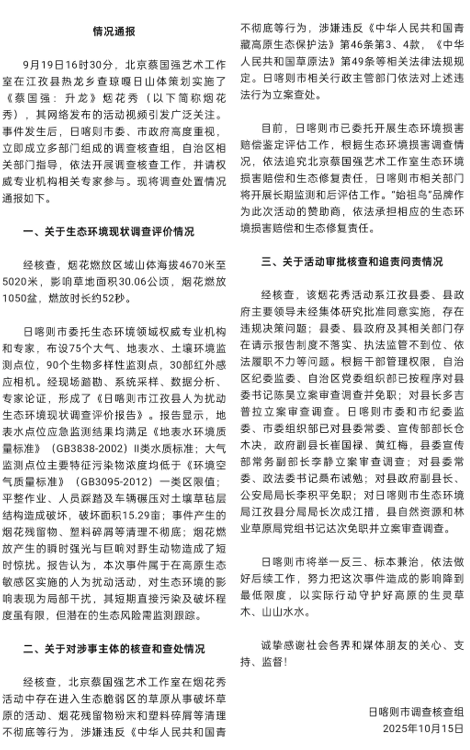 官方通報“蔡國強煙花秀”事件調(diào)查核查情況(G)