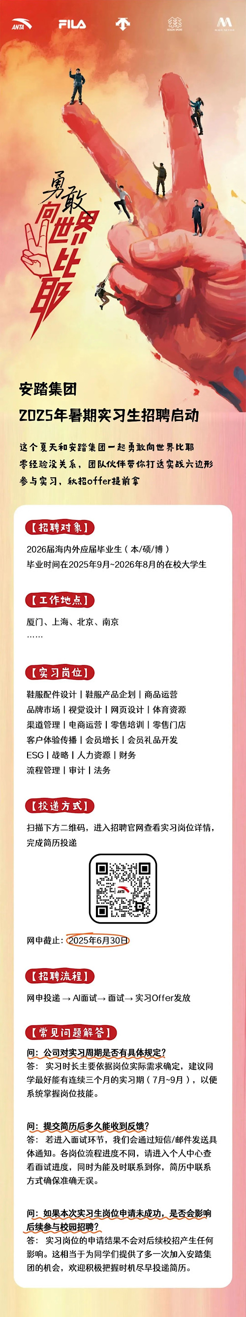 安踏集團2025年暑期實習(xí)生招聘啟動