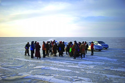 2015年2月3日下午6點,-18℃,太陽即將從青海湖冰封的湖面上消失,巡護志愿者與漁政和警方一起,從清晨起,就在湖面上搜尋非法下網(wǎng)點。湟魚是青海湖“水-魚-鳥”生態(tài)鏈中的重要一環(huán),一旦湟魚數(shù)量減少,水鳥不再棲息,湖中藻類泛濫,青海湖將成“死湖”。 |