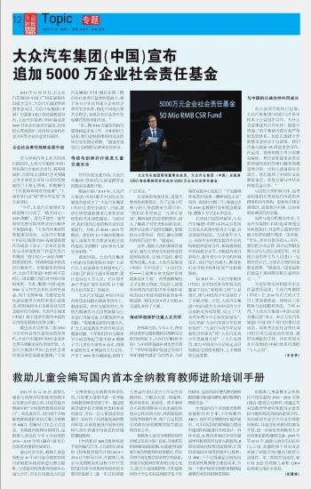 大眾汽車集團(tuán)(中國(guó))宣布追加5000萬企業(yè)社會(huì)責(zé)任基金