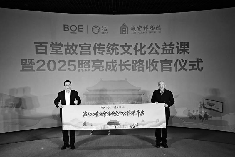 近日,BOE(京東方)“百堂故宮傳統(tǒng)文化公益課”暨2025照亮成長(zhǎng)路收官儀式在故宮博物院舉行。故宮博物院是BOE(京東方)“照亮成長(zhǎng)路”公益項(xiàng)目的重要合作伙伴,雙方自2023年攜手啟動(dòng)“百堂故宮傳統(tǒng)文化公益課”項(xiàng)目,依托BOE(京東方)智慧教育解決方案與數(shù)字技術(shù)弘揚(yáng)中華優(yōu)秀傳統(tǒng)文化,不僅為偏遠(yuǎn)地區(qū)教育高質(zhì)量發(fā)展注入科技活力,還憑借數(shù)字化形式推動(dòng)文化傳承,展現(xiàn)傳統(tǒng)文化歷久彌新的獨(dú)特魅力。 該項(xiàng)目于云南省保山市啟動(dòng),歷時(shí)兩年已走進(jìn)包括陜西西鄉(xiāng)、山西婁煩、四川理塘、青海玉樹(shù)在內(nèi)的多地近40所學(xué)校,線上線下累計(jì)惠及學(xué)生超過(guò)兩萬(wàn)名,持續(xù)推動(dòng)“科技+教育+文化”的可持續(xù)發(fā)展,切實(shí)幫助偏遠(yuǎn)地區(qū)學(xué)生獲得近距離感受中華傳統(tǒng)文化魅力的教育機(jī)會(huì)。 活動(dòng)現(xiàn)場(chǎng),故宮博物院院長(zhǎng)王旭東,故宮博物院副院長(zhǎng)朱鴻文,中國(guó)鄉(xiāng)村發(fā)展基金會(huì)副秘書(shū)長(zhǎng)丁亞冬,京東方科技集團(tuán)CEO馮強(qiáng),京東方科技集團(tuán)副總裁、首席人事官李洋,京東方科技集團(tuán)副總裁、首席品牌官司達(dá)等嘉賓,以及曾參與項(xiàng)目課程的五所學(xué)校20名師生代表齊聚一堂,共同見(jiàn)證這一重要時(shí)刻,并展望科技賦能文化傳承與青少年教育的未來(lái)新篇。 朱鴻文在致辭中表示,“故宮博物院和京東方科技集團(tuán)都是深耕各自領(lǐng)域的實(shí)踐者,我們擁有推動(dòng)文化教育發(fā)展的多元化優(yōu)勢(shì)——企業(yè)有技術(shù)賦能的能力,文化單位有內(nèi)容資源的厚度。我們通過(guò)‘文化+科技’的雙重賦能,帶領(lǐng)邊遠(yuǎn)地區(qū)的孩子們?cè)谥腔壅n堂上觸摸歷史脈搏,跨越時(shí)間和空間的限制,近距離感受故宮承載的中華優(yōu)秀傳統(tǒng)文化的獨(dú)特魅力?!?br> 李洋在致辭中表示,“京東方‘照亮成長(zhǎng)路’項(xiàng)目已走過(guò)十年,它已超越單一公益項(xiàng)目,成長(zhǎng)為一個(gè)開(kāi)放、多元、可持續(xù)的公益平臺(tái)。百堂課的收官不是終點(diǎn),而是一個(gè)嶄新的起點(diǎn)。我們期待更多優(yōu)秀的伙伴加入‘照亮成長(zhǎng)路’項(xiàng)目,共同以科技與文化之光,讓優(yōu)質(zhì)的教育資源突破時(shí)空限制,照亮更多孩子的成長(zhǎng)之路。” 丁亞冬在致辭中表示,“京東方作為全球創(chuàng)新型物聯(lián)網(wǎng)公司和全球顯示產(chǎn)品龍頭企業(yè),積極履行社會(huì)責(zé)任,不僅提供公益資金捐贈(zèng),還以其全球領(lǐng)先的顯示技術(shù)和物聯(lián)網(wǎng)解決方案,為‘百堂故宮傳統(tǒng)文化公益課’提供了高質(zhì)量的傳輸與呈現(xiàn)保障?!?br> 儀式現(xiàn)場(chǎng),曾參與項(xiàng)目課程的五所學(xué)校師生代表帶著親手制作的紀(jì)念品依次登臺(tái)發(fā)言,表達(dá)對(duì)BOE(京東方)及故宮博物院的謝意。在儀式結(jié)尾,王旭東與馮強(qiáng)共同上臺(tái)展開(kāi)卷軸,標(biāo)志著第一百堂故宮傳統(tǒng)文化公益課開(kāi)啟,也為故宮博物院建院100周年這一重要?dú)v史時(shí)刻增添特殊的紀(jì)念意義。儀式結(jié)束后,故宮工作人員帶領(lǐng)學(xué)生走進(jìn)故宮,在充滿歷史底蘊(yùn)的宮殿中講述建筑與文物背后的文化故事,為孩子們帶來(lái)了意義非凡的第一百堂故宮文化課,沉浸式加深偏遠(yuǎn)地區(qū)孩童對(duì)中華優(yōu)秀傳統(tǒng)文化的認(rèn)識(shí)。 除了實(shí)地游覽故宮,BOE(京東方)還安排了豐富的研學(xué)活動(dòng),帶領(lǐng)師生們?cè)谕醺當(dāng)?shù)字藝術(shù)館與京東方歷史展覽館開(kāi)展研學(xué)。在數(shù)字藝術(shù)館,BOE(京東方)通過(guò)高清顯示與動(dòng)態(tài)影像技術(shù)打造出沉浸式文化場(chǎng)景,讓文物“活”起來(lái);在京東方歷史展覽館,孩子們則透過(guò)屏幕技術(shù)的演進(jìn),直觀感受到科技發(fā)展的創(chuàng)新力量。在領(lǐng)略科技賦能藝術(shù)魅力之余,BOE(京東方)還帶領(lǐng)師生們走進(jìn)北京的地標(biāo)性景區(qū),親身感受天安門(mén)廣場(chǎng)的莊嚴(yán)、頤和園的秀美、景山公園的遼闊。這場(chǎng)研學(xué)之旅,讓歷史與文明不再遙遠(yuǎn),讓文化變得可觸可感,助力孩子們收獲更為鮮活而深刻的文化體驗(yàn)。 依托“照亮成長(zhǎng)路”項(xiàng)目,BOE(京東方)搭建起跨越空間和距離的數(shù)字化平臺(tái),開(kāi)展10余年來(lái)已在10個(gè)省市建成156間智慧教室,累計(jì)受益師生超7萬(wàn)人,不僅讓偏遠(yuǎn)地區(qū)的孩子們沉浸式感受到文化和科技的力量,也通過(guò)豐富的研學(xué)活動(dòng),讓孩子們能夠跨越千里之遙來(lái)到祖國(guó)的心臟研學(xué),在心中埋下科技賦能文化的種子。這不僅標(biāo)志著“照亮成長(zhǎng)路”實(shí)現(xiàn)了從“硬件支持”到“內(nèi)容賦能”的深刻跨越,更是BOE(京東方)公益維度的重要升級(jí)。而“百堂故宮傳統(tǒng)文化公益課”的落地,也象征著B(niǎo)OE(京東方)“照亮成長(zhǎng)路”項(xiàng)目全新的開(kāi)始。 BOE(京東方)持續(xù)以技術(shù)突破賦能文化業(yè)態(tài)革