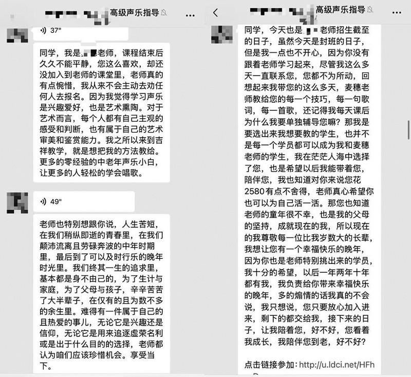 9.9元賣(mài)書(shū)送課,實(shí)則是為了推銷高價(jià)課;號(hào)稱交5000元學(xué)費(fèi)可跟著名師學(xué)中醫(yī),一個(gè)月后就能“速成”開(kāi)店,結(jié)果一直推銷保健品…… 近期,記者調(diào)查發(fā)現(xiàn),越來(lái)越多老年人渴望通過(guò)老年課堂拓寬朋友圈、學(xué)習(xí)新技能、豐富晚年生活。這也讓他們成為不法分子圍獵的對(duì)象,多地不時(shí)爆出老年人上課被騙的案例。 “免費(fèi)”、低價(jià)課堂套路多多 在黑貓投訴平臺(tái),常見(jiàn)各類“老年課堂被騙”的投訴;微博上,“76歲大爺學(xué)AI做視頻被騙2880元”話題閱讀量近150萬(wàn),類似話題時(shí)常登上熱搜。 記者調(diào)查發(fā)現(xiàn),一些老年人上網(wǎng)課遭遇花式騙局。有的老年課堂宣稱免費(fèi)、低價(jià),引流后再以各種話術(shù)誘導(dǎo)老年人高價(jià)買(mǎi)課。這類課程多是聲樂(lè)、視頻剪輯、人工智能等類型。 2025年5月,大學(xué)生秋秋(化名)的奶奶刷到某直播間,主播聲稱“9.9元賣(mài)書(shū)送免費(fèi)聲樂(lè)課”。秋秋替奶奶下單后,助理老師添加微信將她拉入課程群。上了線上體驗(yàn)課后,老師開(kāi)始不斷私信發(fā)長(zhǎng)語(yǔ)音,慫恿購(gòu)買(mǎi)高價(jià)課,并打出“知道您舍不得2580元,但我想讓您有一個(gè)幸??鞓?lè)的晚年”等“親情牌”話術(shù)。 有的網(wǎng)課以老年課堂為名頭,實(shí)則直播帶貨,推銷養(yǎng)生、中醫(yī)等產(chǎn)品。 來(lái)自河南的林女士告訴記者,父母在所謂“國(guó)學(xué)大師”的引導(dǎo)下加了十幾個(gè)微信群,每次上課先講一點(diǎn)養(yǎng)生理論,然后用大量時(shí)間介紹各類根治慢性病的“神藥”。課后還要提交學(xué)習(xí)心得、為“神藥”拍攝推銷視頻,發(fā)給親朋好友。林女士發(fā)覺(jué)時(shí),父母為購(gòu)買(mǎi)“神藥”已花費(fèi)上萬(wàn)元。 一些線下老年課堂也暗藏套路。表面上,學(xué)費(fèi)只要幾百元,但有的要求購(gòu)買(mǎi)高價(jià)教具;有的頻頻組織聚餐、旅游、比賽等線下活動(dòng),費(fèi)用動(dòng)輒成千上萬(wàn)元;更有甚者,利用老年課堂進(jìn)行傳銷或詐騙。 家住陜西西安的王女士退休后,在小區(qū)附近一家機(jī)構(gòu)報(bào)名了中醫(yī)養(yǎng)生課。“剛開(kāi)始講了一些養(yǎng)生知識(shí),免費(fèi)體驗(yàn)了理療儀,但三節(jié)課后老師就提出,想要繼續(xù)上課就要購(gòu)買(mǎi)上萬(wàn)元的儀器,或者拉更多的人來(lái)報(bào)課?!蓖跖空f(shuō),她是被朋友介紹過(guò)去的,朋友前后拉了四個(gè)人,其中一個(gè)人花了17800元買(mǎi)了儀器。 缺資質(zhì)、假師資、售賣(mài)偽劣產(chǎn)品 這些暗藏套路、滋生騙局的老年課堂背后,是哪些機(jī)構(gòu)在運(yùn)營(yíng)? 根據(jù)有關(guān)規(guī)定,老年教育培訓(xùn)在內(nèi)的各類教育培訓(xùn)機(jī)構(gòu),應(yīng)按照教育領(lǐng)域有關(guān)法律法規(guī)規(guī)范管理,必須經(jīng)審批取得辦學(xué)許可證后,依法申請(qǐng)相應(yīng)的法人登記,才能開(kāi)展培訓(xùn)。 記者調(diào)查發(fā)現(xiàn),一些提供線上老年教育的公司,其經(jīng)營(yíng)范圍多為“互聯(lián)網(wǎng)信息服務(wù)、教育咨詢服務(wù)”等,并不包括教育培訓(xùn)服務(wù)。記者采訪多地教育部門(mén)得知,部分提供線上老年課程的公司,雖擁有經(jīng)營(yíng)資質(zhì),但并未在教育部門(mén)登記備案。 有的老年課堂背后運(yùn)營(yíng)公司經(jīng)營(yíng)異常。廣西的陳女士偶然在父母手機(jī)上發(fā)現(xiàn)三筆涉及老年大學(xué)網(wǎng)校會(huì)員、老年大學(xué)精品課程的扣款。記者在企查查上查詢發(fā)現(xiàn),其中一家關(guān)聯(lián)公司目前為經(jīng)營(yíng)異常狀態(tài)。 在師資方面,有些機(jī)構(gòu)濫竽充數(shù),以銷售人員甚至AI數(shù)字人冒充“研究院專家”“國(guó)學(xué)大師”,騙取老年人信任?!澳X梗需要長(zhǎng)期治療,這款‘神藥’可以逆轉(zhuǎn)病變。”屏幕上,身著中山裝、戴眼鏡、自稱為某大學(xué)研究院教授的“專家”侃侃而談。經(jīng)調(diào)查發(fā)現(xiàn),“專家”實(shí)際上是AI數(shù)字人,大學(xué)官網(wǎng)查不到視頻顯示的身份信息。 記者了解到,老年課堂上推銷的產(chǎn)品,有的比正規(guī)渠道價(jià)格貴數(shù)倍;有的被包裝成包治百病的“神藥”,涉嫌虛假宣傳、夸大藥物療效;有的甚至是假冒偽劣產(chǎn)品。 遼寧沈陽(yáng)的梁女士在上課時(shí)被忽悠高價(jià)購(gòu)買(mǎi)一款“進(jìn)口”保健品,保健品瓶身有明顯英文拼寫(xiě)錯(cuò)誤。河南林女士的父母在網(wǎng)課上購(gòu)買(mǎi)的“腦細(xì)胞激活液”,包裝注明是運(yùn)動(dòng)營(yíng)養(yǎng)食品,但被介紹為可以治療老年癡呆;其研制機(jī)構(gòu)“國(guó)醫(yī)中醫(yī)藥生命研究院”,在企查查等渠道也并未查到。 讓老年人安心上課 多地監(jiān)管部門(mén)表示,一些線上老年課堂的運(yùn)營(yíng)機(jī)構(gòu),在注冊(cè)地沒(méi)有實(shí)體,課程扣費(fèi)、售后保障難以追溯。只有少數(shù)受害老人的家屬通過(guò)12315、消費(fèi)者權(quán)益保護(hù)平臺(tái)、黑貓投訴等方式追回課程費(fèi)用,多數(shù)人無(wú)奈地自認(rèn)“花錢(qián)買(mǎi)教訓(xùn)”。 業(yè)內(nèi)