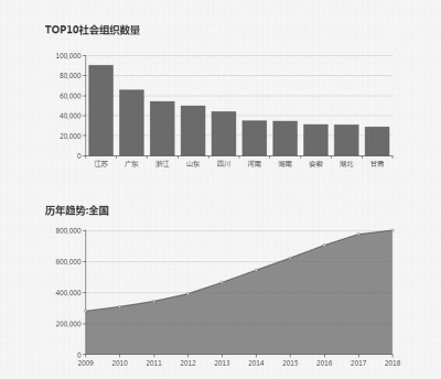 其中,基金會6322個(gè),比上年增加10.68%;社會團(tuán)體373194個(gè),比上年增加7.75%;民辦非企業(yè)單位421567個(gè),比上年增加9.65%。
