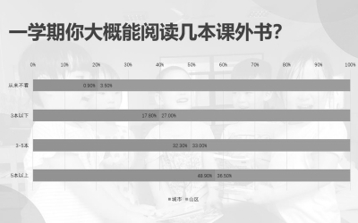 白皮書指出,城市學生與山區(qū)學生看書的極端值差距較大。山區(qū)學生一學期不讀課外書的人數(shù)是城市學生的3.5倍,而閱讀五本以上的人數(shù)則比城市學生少近10%。閱讀是孩子認識世界的重要途徑,山區(qū)學生可能在平均認知輸入上少于城市學生。