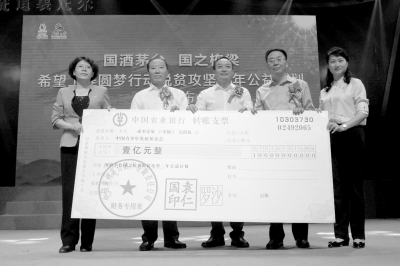 第一,未來三年茅臺集團(tuán)將每年持續(xù)捐贈1億元,3年共捐贈3億元,開展“國酒茅臺·國之棟梁——希望工程圓夢行動”,在全國范圍內(nèi)資助6萬名貧困學(xué)子圓夢大學(xué),其中貴州省3萬名,其他省區(qū)市3萬名,改變6萬個家庭因?qū)W致貧的狀況,促使6萬個家庭脫貧。