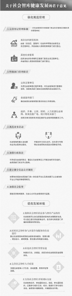 在鼓勵社會智庫發(fā)展的同時,《意見》要求從強(qiáng)化自身建設(shè)和強(qiáng)化規(guī)范管理兩個方面保證社會智庫的良性運(yùn)行。