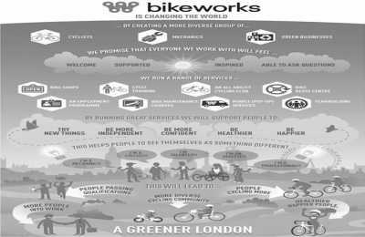 ■ 彭涵 出現(xiàn)在電影以及文學(xué)作品中的自行車通常是青春與自由的意象表達(dá)。在現(xiàn)實(shí)生活中,自行車是出行工具,騎自行車是健身方式,也是改變青少年生活的社區(qū)生活。 在即將到來(lái)的暑假假期,你既可以選擇“買買買”的購(gòu)物生活,也可以選擇和朋友歡聚,更可以選擇揮灑汗水度過(guò)假日。對(duì),你還可以使用工具修繕自己的自行車。英國(guó)倫敦的Bikeworks自行車商店將會(huì)提供“修車”課程??梢宰屇闶褂霉ぷ髋_(tái)、工具、潤(rùn)滑油、自行車手冊(cè)圖書(shū)館以及專家咨詢服務(wù)。在專家和志愿者的幫助下,你不僅可以讓自己的愛(ài)車重新回到路上,還可以在這里售賣自己閑置的二手零件。 我們是誰(shuí)? ——需求+構(gòu)想=Bikeworks Bikeworks是以社區(qū)利益公司(CIC)的形式成立的。社區(qū)利益公司是一種較新的注冊(cè)類型,產(chǎn)生于2005—2006年,主要針對(duì)社會(huì)企業(yè)。“社區(qū)利益”意味著企業(yè)享有私營(yíng)企業(yè)被賦予的一部分自由,但不是以利潤(rùn)最大化和資本積累為最終目標(biāo)。正像戴維所說(shuō),這種企業(yè)類型“無(wú)助于也無(wú)礙于企業(yè)做大,但對(duì)營(yíng)銷很有利”,因?yàn)槿藗円豢吹紺IC,就知道是社會(huì)企業(yè)。 Bikeworks是兩家初創(chuàng)時(shí)期的社會(huì)企業(yè)合并后的產(chǎn)物。戴維·米勒原本是東倫敦一家以社區(qū)為基礎(chǔ)、以自行車回收為主營(yíng)項(xiàng)目的社會(huì)企業(yè)經(jīng)理。面對(duì)當(dāng)?shù)氐淖孕熊嚭谑薪灰?,戴維感到憂心忡忡。他想到能不能創(chuàng)建一個(gè)項(xiàng)目,既能讓弱勢(shì)群體有機(jī)會(huì)騎車,又能幫助他們就業(yè)。為了實(shí)現(xiàn)這個(gè)目標(biāo),他決定設(shè)立一項(xiàng)計(jì)劃。 他的計(jì)劃得到了兩家基金會(huì)的支持。2007年初,埃斯梅·費(fèi)爾巴恩基金會(huì)(Esmeé Fairbairn Foundation)和城市橋信托基金 (City Bridge Trust) 同意為這個(gè)項(xiàng)目提供支持。與此同時(shí),吉姆·布萊克莫爾(及搭檔佐伊·波特洛克)創(chuàng)建了一家名“Bikeworks”的社區(qū)組織,利用現(xiàn)有資金購(gòu)置數(shù)輛自行車,再在東倫敦哈克尼區(qū)提供騎車培訓(xùn)。他們于2006年11月將它注冊(cè)為社區(qū)利益公司,為自閉癥兒童提供騎車培訓(xùn)。此時(shí)Bikeworks已經(jīng)從布羅姆利社區(qū)中心和倫敦自行車運(yùn)動(dòng)協(xié)會(huì)取得了少量資助(約10000英鎊)。 2007年3月,戴維與吉姆見(jiàn)了面。此前,他們?cè)鴱呐笥涯抢锪私獾?,?duì)方和自己有著相似的意向。正如戴維在一次采訪中所說(shuō):“我希望擁有一個(gè)商業(yè)合作伙伴,我覺(jué)得他的技能和背景與我的期望很相配?!庇谑牵顺蔀榱薆ikeworks的聯(lián)合董事,并開(kāi)始精誠(chéng)合作。 最初,戴維和吉姆的經(jīng)營(yíng)理念不盡相同,但是他們卻擁有一個(gè)共同的載體:自行車。戴維的想法是以回收二手自行車為手段提供更多就業(yè)機(jī)會(huì),而吉姆則更關(guān)注于通過(guò)騎車訓(xùn)練讓更多殘疾人學(xué)會(huì)騎車。他們很快意識(shí)到,其實(shí)可以通過(guò)獨(dú)特而整合的方式來(lái)解決這些社會(huì)問(wèn)題。 東倫敦地區(qū)存在著嚴(yán)重的就業(yè)問(wèn)題和健康問(wèn)題,部分地區(qū)的就業(yè)率以及赤貧社區(qū)的健康指標(biāo)在全英國(guó)是最低的。Bikeworks作為一家聯(lián)合型社會(huì)企業(yè),堅(jiān)持“三重底線”原則(指企業(yè)盈利、社會(huì)責(zé)任、環(huán)境責(zé)任三者的統(tǒng)一),試圖以自行車為媒介解決上述問(wèn)題,從而達(dá)到使市民積極健康地生活、增加社區(qū)居民的活動(dòng)量、實(shí)現(xiàn)二手自行車的回收再利用、為勞動(dòng)力市場(chǎng)的弱勢(shì)群體提供培訓(xùn)、創(chuàng)造就業(yè)崗位和增加就業(yè)渠道等目標(biāo)。 我們從哪里來(lái)? ——以自行車為載體 戴維和吉姆將Bikeworks設(shè)立在東倫敦維多利亞公園附近的貝斯納爾格林社區(qū)的一個(gè)倉(cāng)庫(kù)里,因?yàn)榇饲八麄兌硕荚谶@個(gè)社區(qū)工作和生活。起初,他們主要通過(guò)與地方政府簽訂自行車培訓(xùn)合同獲得收益。與紐漢市簽訂的培訓(xùn)合同是他們簽訂的第一個(gè)大單(價(jià)值100,000英鎊),這筆大單使Bikeworks獲得了進(jìn)一步發(fā)展。隨后他們又與周邊城市沃爾瑟姆福雷斯特市和陶爾哈姆萊茨市簽訂了培訓(xùn)合同。很快地,他們就從一家作坊式的小企業(yè)成長(zhǎng)為每年為數(shù)千人提供培訓(xùn)的大企業(yè)。 同樣重要的是,前期收入為Bikeworks發(fā)展其他業(yè)務(wù)提供了基礎(chǔ)。例如,Bikeworks隨后從“星火計(jì)劃”中獲得了75000英鎊的收入,這項(xiàng)收入又被應(yīng)用到開(kāi)發(fā)“流浪者計(jì)劃”中。“流浪者計(jì)劃”是把流浪者(或近日無(wú)家可歸的人)培養(yǎng)成自行車機(jī)械師和培訓(xùn)師的一項(xiàng)計(jì)劃。 近幾年,在Bikeworks開(kāi)展的多層次經(jīng)營(yíng)活動(dòng)中,有兩方面發(fā)展得最快。首先是它與私營(yíng)企業(yè)的合作。 Bikeworks與新聞國(guó)際公司、倫敦勞埃德保險(xiǎn)公司、普華永道會(huì)計(jì)師事務(wù)所等多家企業(yè)客戶合作,在這些機(jī)構(gòu)中推廣騎車出
