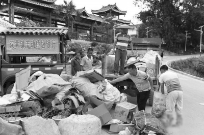 7月8日,“銀行”將收到的生活垃圾裝車,運(yùn)送至回收站。貴州省施秉縣雙井鎮(zhèn)翁西村開辦“垃圾銀行”,通過“經(jīng)濟(jì)利益”來(lái)引導(dǎo)民眾養(yǎng)成垃圾收集分類與投放的良好習(xí)慣?!袄y行”采取的垃圾商品兌換方式是積分制,村民們可根據(jù)不同垃圾種類進(jìn)行入賬登記積分,積分有2至15分不等分值,所積分?jǐn)?shù)達(dá)到商品種類規(guī)定分值后即可兌換新的生活用品。