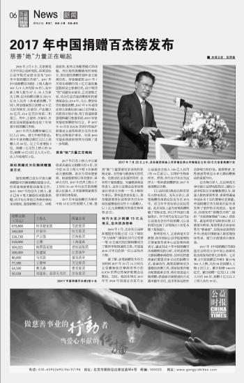 2017年中國(guó)捐贈(zèng)百杰榜發(fā)布