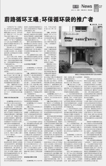 蔚路循環(huán)王曦:環(huán)保循環(huán)袋的推廣者