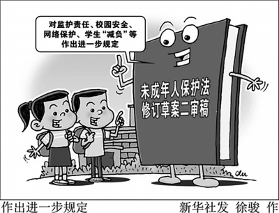 備受關(guān)注的未成年人保護(hù)法修訂草案6月28日提請(qǐng)十三屆全國人大常委會(huì)第二十次會(huì)議進(jìn)行第二次審議。對(duì)比此前的草案一審稿,草案二審稿針對(duì)當(dāng)前社會(huì)熱點(diǎn)問題,對(duì)監(jiān)護(hù)責(zé)任、校園安全、網(wǎng)絡(luò)保護(hù)、學(xué)生“減負(fù)”等作出進(jìn)一步規(guī)定。 亮點(diǎn)一: 壓實(shí)各方監(jiān)護(hù)責(zé)任 對(duì)于心智發(fā)育不成熟,認(rèn)知、辨別能力不強(qiáng)的未成年人而言,監(jiān)護(hù)人是他們合法權(quán)益免受侵害的“保護(hù)者”,也是及時(shí)提醒糾偏,避免他們誤入歧途的“引領(lǐng)者”。然而,在現(xiàn)實(shí)生活中,未成年人監(jiān)護(hù)缺失、得不到應(yīng)有照護(hù)的情況時(shí)有發(fā)生。 為此,草案二審稿進(jìn)一步落實(shí)監(jiān)護(hù)人的責(zé)任,明確委托照護(hù)“應(yīng)當(dāng)委托具有照護(hù)能力的完全民事行為能力人代為照護(hù)”“聽取有表達(dá)意愿能力未成年人的意見”,并規(guī)定未成年人的父母或其他監(jiān)護(hù)人“與未成年人和被委托人至少每月聯(lián)系和交流一次”。 “這一修改,有著很強(qiáng)的現(xiàn)實(shí)針對(duì)性。”中國刑事訴訟法學(xué)研究會(huì)副會(huì)長、北京師范大學(xué)未成年人檢察研究中心教授宋英輝說,這將避免實(shí)踐中監(jiān)護(hù)人因外出務(wù)工等原因?qū)е卤O(jiān)護(hù)實(shí)際缺位的問題,保障未成年人的安全、健康、教育等。尤其值得肯定的是,“聽取有表達(dá)意愿能力未成年人的意見”的規(guī)定,可以使監(jiān)護(hù)人委托他人監(jiān)護(hù)、照護(hù)未成年人時(shí)更加審慎,更尊重未成年人的意愿,使未成年人得到更好的照護(hù)。 草案二審稿在一審稿所列舉的應(yīng)當(dāng)由國家進(jìn)行臨時(shí)監(jiān)護(hù)的情形基礎(chǔ)上,增加列舉了“監(jiān)護(hù)人因自身原因或者因發(fā)生自然災(zāi)害、事故災(zāi)難、公共衛(wèi)生事件等突發(fā)事件不能履行監(jiān)護(hù)職責(zé),導(dǎo)致未成年人監(jiān)護(hù)缺失”等三種情形。 上海社會(huì)科學(xué)院法學(xué)研究所所長、上海市法學(xué)會(huì)未成年人法研究會(huì)會(huì)長姚建龍表示,這一修改吸收了新冠肺炎疫情防控實(shí)踐經(jīng)驗(yàn),體現(xiàn)了國家的責(zé)任與擔(dān)當(dāng),也為疫情防控常態(tài)化提供了有力的法律保障。此外,新增加的“監(jiān)護(hù)人教唆、利用未成年人實(shí)施嚴(yán)重違法犯罪行為,未成年人需要被帶離安置”情形,也是對(duì)實(shí)踐中困擾公安司法機(jī)關(guān)打擊“懷抱嬰兒”類犯罪的針對(duì)性回應(yīng),有效填補(bǔ)了利用未成年人違法犯罪以逃避打擊的法律漏洞。 亮點(diǎn)二: 強(qiáng)化網(wǎng)絡(luò)保護(hù)相關(guān)內(nèi)容 草案二審稿擬強(qiáng)化網(wǎng)絡(luò)保護(hù)相關(guān)內(nèi)容,規(guī)定國家建立統(tǒng)一的未成年人網(wǎng)絡(luò)游戲電子身份認(rèn)證系統(tǒng),明確向未成年人提供網(wǎng)絡(luò)游戲服務(wù)的時(shí)間;要求網(wǎng)絡(luò)服務(wù)提供者對(duì)用戶和信息加強(qiáng)管理,發(fā)現(xiàn)違法信息或者侵害未成年人的違法犯罪行為及時(shí)采取相應(yīng)的處置措施等。同時(shí),對(duì)網(wǎng)絡(luò)服務(wù)提供者不依法履行預(yù)防沉迷網(wǎng)絡(luò)、制止網(wǎng)絡(luò)欺凌等義務(wù)的,規(guī)定了相應(yīng)處罰。 “盡管未成年人身心發(fā)育尚不成熟,但仍然享有網(wǎng)絡(luò)權(quán)利,立法需要在權(quán)利與保護(hù)之間進(jìn)行平衡,既不能以保護(hù)之名侵犯未成年人的網(wǎng)絡(luò)權(quán)利,也不能對(duì)未成年人網(wǎng)絡(luò)侵害放任不管?!币堈J(rèn)為,草案二審稿對(duì)網(wǎng)絡(luò)保護(hù)相關(guān)責(zé)任主體的責(zé)任及邊界均予以了較好的明確。未成年人網(wǎng)絡(luò)保護(hù)的基本立場應(yīng)當(dāng)是“外劃底線,內(nèi)強(qiáng)免疫”,確立底線規(guī)則意識(shí),以負(fù)面清單方式劃出嚴(yán)禁行為與嚴(yán)禁傳播的資訊,除此之外則應(yīng)充分尊重未成年人的網(wǎng)絡(luò)權(quán)利,注重通過引導(dǎo)、教育的方式增強(qiáng)未成年人對(duì)網(wǎng)絡(luò)不良資訊的免疫力。 亮點(diǎn)三: 完善學(xué)校安全管理制度 校園本是未成年人健康成長的一方凈土,然而近年來頻發(fā)的校園安全問題卻讓人憂心。如何讓孩子在校園更安全、家長更安心?草案二審稿進(jìn)一步完善學(xué)校安全管理制度,并增加校車管理、學(xué)生欺凌等問題的有關(guān)規(guī)定。 草案二審稿明確,學(xué)校、幼兒園應(yīng)當(dāng)建立安全管理制度,對(duì)未成年人進(jìn)行安全教育,完善安保設(shè)施、配備安保人員,保障未成年人在校、在園期間的人身和財(cái)產(chǎn)安全。 使用校車的學(xué)校、幼兒園應(yīng)當(dāng)建立健全校車安全管理制度,配備安全管理人員,定期對(duì)校車進(jìn)行安全檢查,對(duì)校車駕駛?cè)诉M(jìn)行安全教育,并向未成年人講解校車安全乘坐知識(shí),培養(yǎng)未成年人校車安全事故應(yīng)急處理技能。 一些學(xué)校在學(xué)生欺凌問題上“捂蓋子”“和稀泥”怎么辦?草案二審稿規(guī)定,對(duì)嚴(yán)重的欺凌行為,